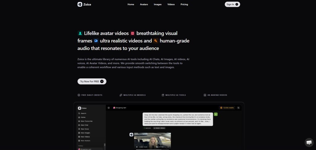 Instead of using cameras, actors, and editing software, Zoice does everything with AI. This makes it a great option for people who want professional videos without technical skills.